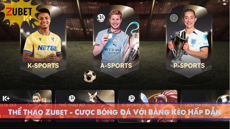- Zubet sở hữu 6 sảnh thể thao đẳng cấp: K – sports, B – sports, S – sports, I – sports, E – sports, thể thao ảo.